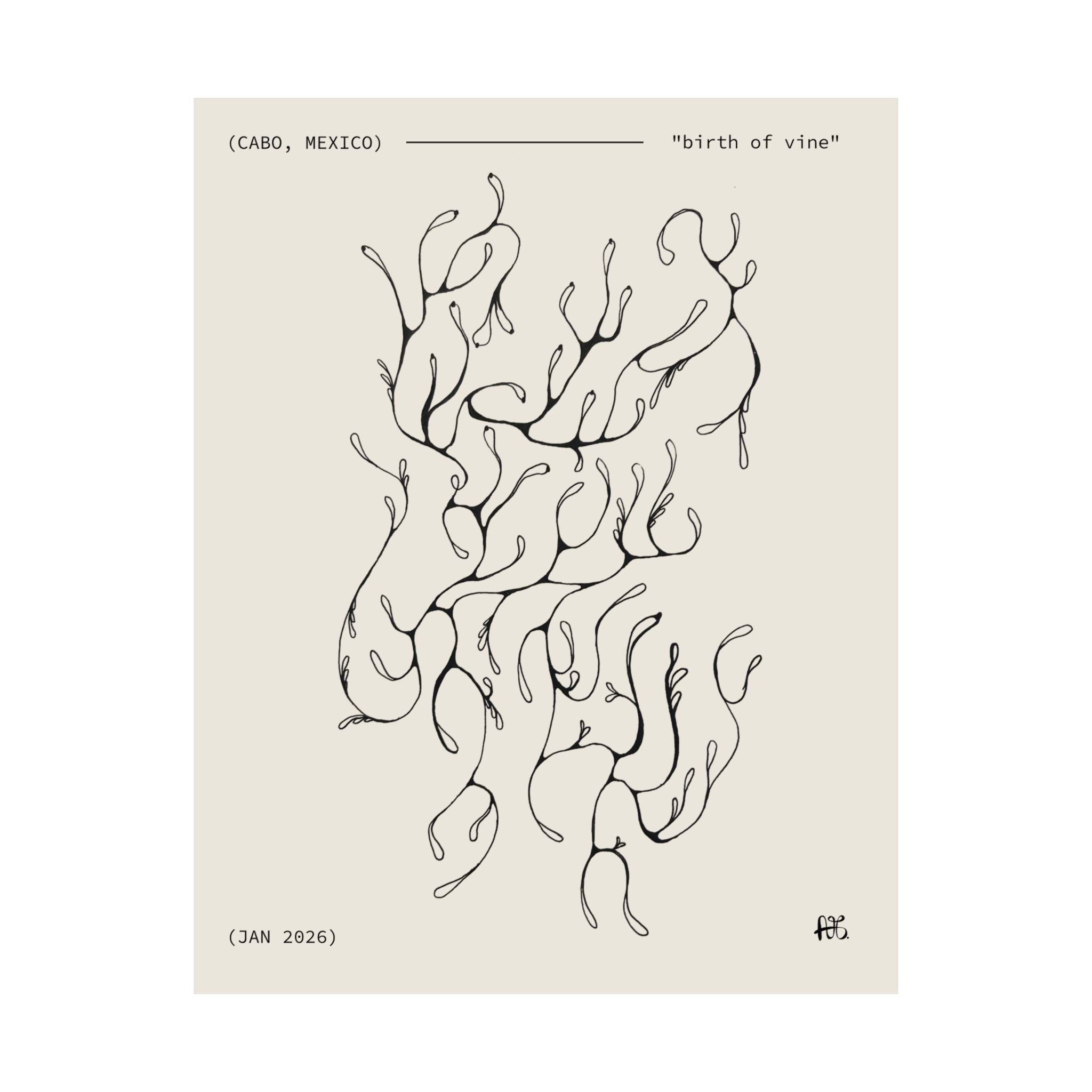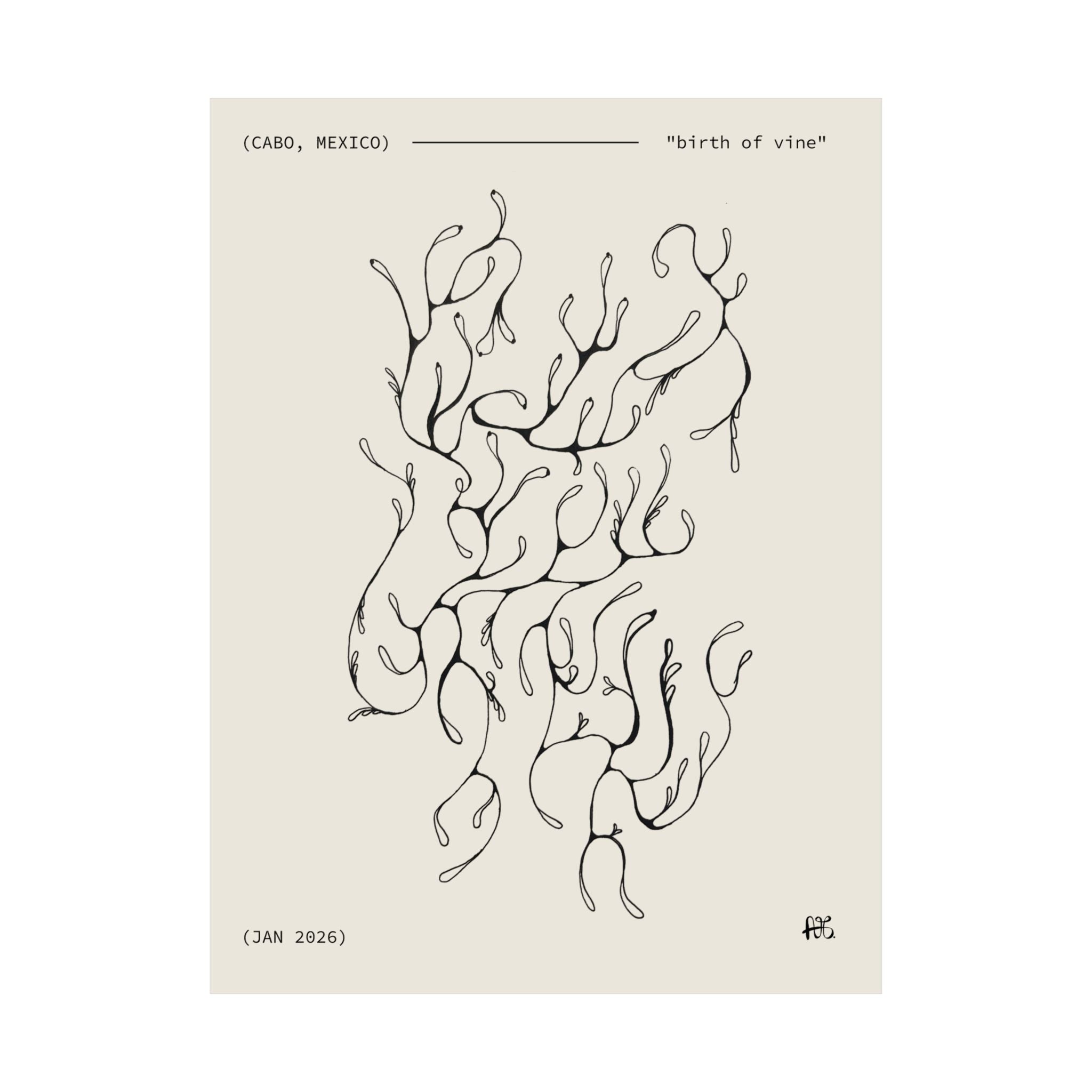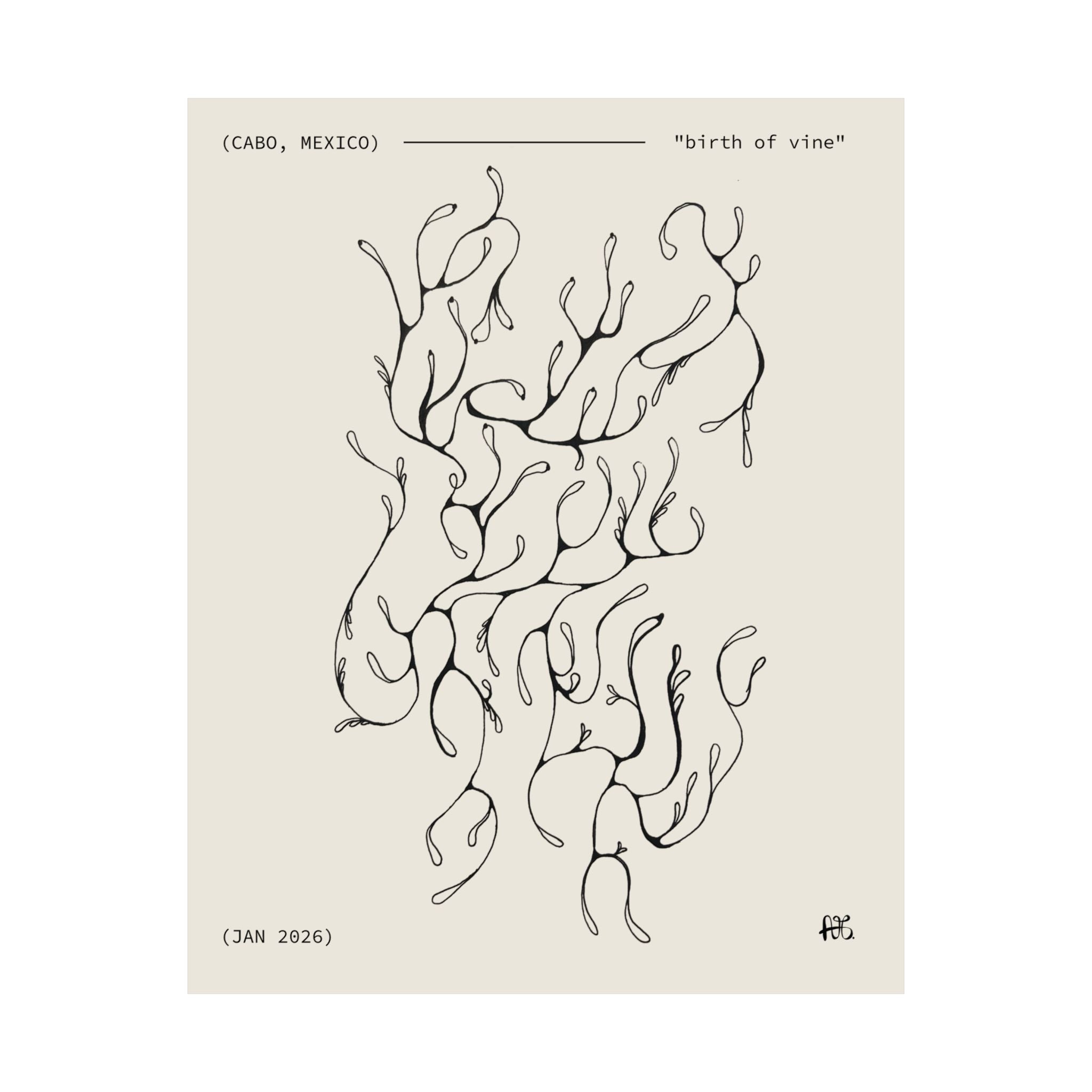 // this piece "birth of vine" was created while i was Cabo, Mexico.. i was inspired *cues tangential rant* + fully birthed a new organicmatter fractal form that I am for now calling "LINEAL VINE". I am currently moving out a liminal space into a season of rebirth + since art imitates life this was expressed in this inception of new visual form.